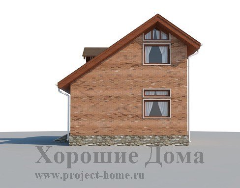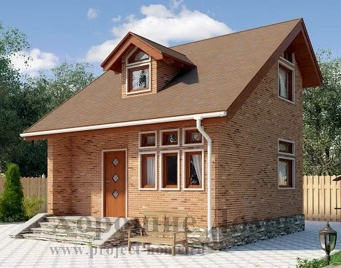 Проект небольшого загородного коттеджа с оригинальным дизайном экстерьера предлагает площадь в 47,9 кв. м. Данный особняк станет наилучшим выбором при необходимости постройки на маленьком участке земли. Дополнительную экономичность этому проекту придает отсутствие цокольного и подвального этажа, что так же упрощает постройку на участках с различными грунтами. Несмотря на небольшую общую площадь, в этом коттедже предусмотрен второй этаж с двумя комнатами свободного назначения, которые возможно оборудовать под мастерскую, кабинет или детскую комнаты. Их площадь составляет по 9 кв. м.