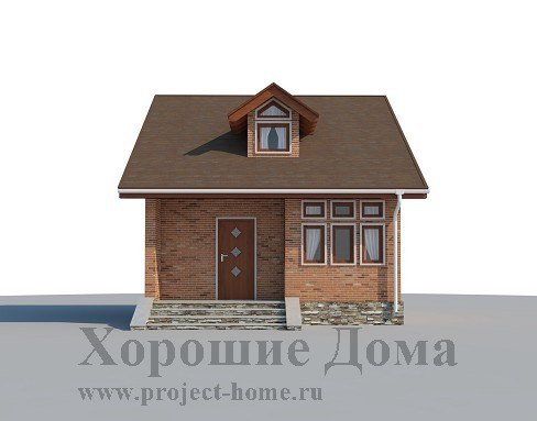 Дом из газобетона 6,1x6,1 м с мансардой и асимметричной крышей