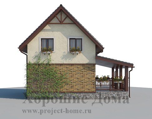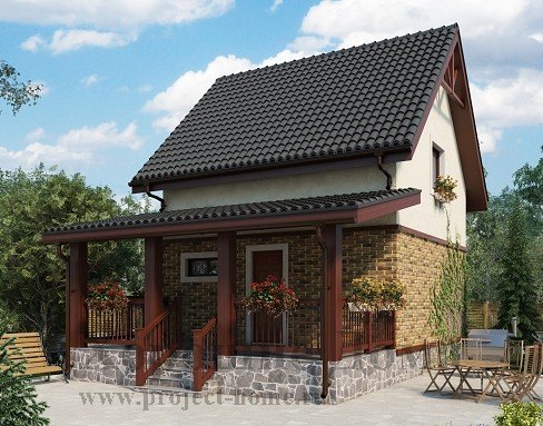 Необыкновенно компактный загородный дом, простой и добротный, с цокольным этажом и просторной крытой террасой станет идеальным выбором для небольшой семьи или пожилой четы со средним уровнем достатка. Дом предназначен для постоянного проживания, для этого на цокольном этаже предусмотрено помещение котельной. Там же находится складское помещение для хранения продуктов и садового инвентаря.