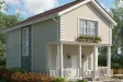 Удивительно стильный и светлый загородный коттедж, очень компактный и малобюджетный, с эффектным оформлением главного входа и характерными высокими окнами. Проект рассчитан для проживания небольшой семьи в составе 2-4 человек. Возможен вариант сезонного использования дома и круглогодичного: помещение для отопительного котла проектом предусмотрено.