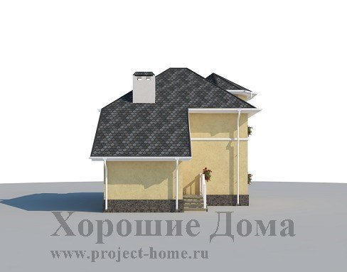 Проект дома из газобетона 8,5 на 6,5 м с оригинальным угловым эркером