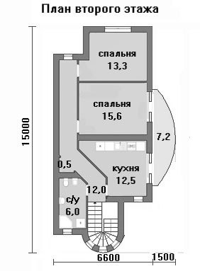 Второй этаж включает две спальные комнаты 13,3 кв. м. и 15,6 кв. м. Изюминкой второго этажа является наличие дополнительной кухни, что позволяет разместиться в доме двум семьям.