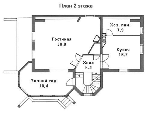 На втором этаже находятся просторная уютная гостиная с камином, и остекленным проемом в зимний сад. По соседству с кухней расположена хозяйственная комната для хранения продуктов.
