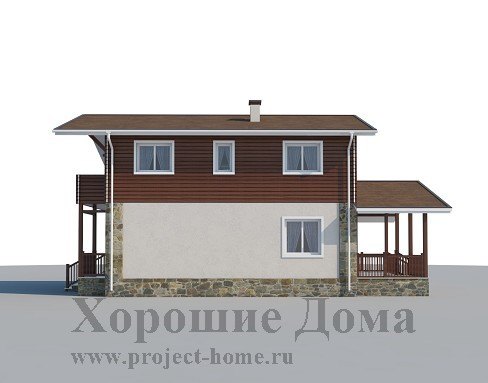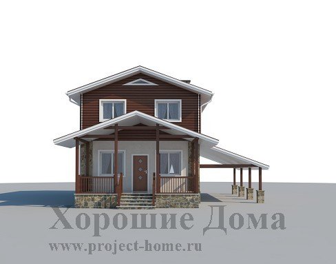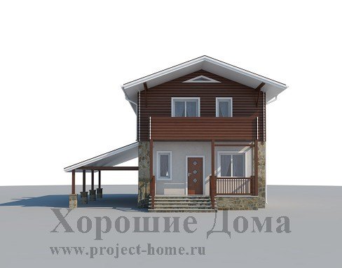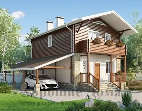 Дом из газобетона площадью без малого 100 кв.м. Построен в лучших традициях малоэтажного домостроения. Возможно строительство как из газобетона, так и из пенобетона. Второй этаж дома красиво отделан деревом. К дому пристроено парковочное место для автомобиля в виде навеса. Удобная и, можно сказать, стандартная для такого вида и типа дома планировка, где второй этаж полностью отдан под приватную зону хозяев в виде двух спален и санузла.