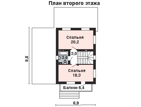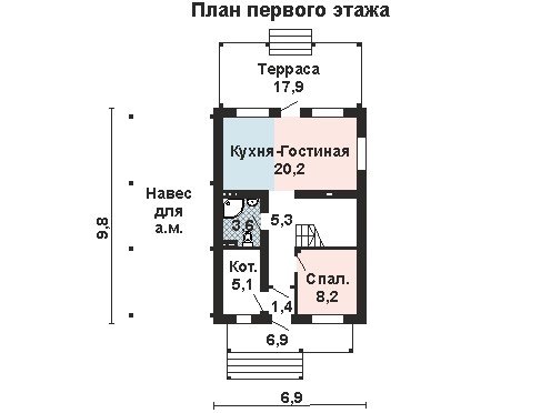 Размеры в плане: 6,9x9,8 м (около 7x10 м)
