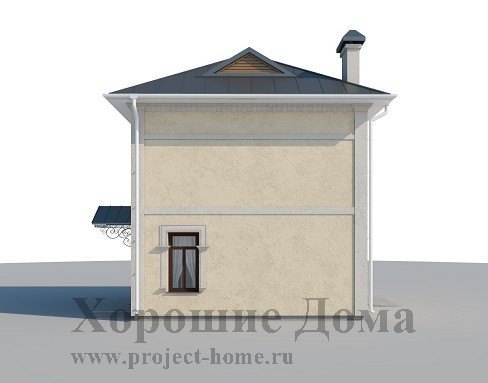 Небольшой загородный коттедж, выполненный в строгом стиле без архитектурных излишеств, предназначен для сезонного проживания. Дом очень компактный, экономичный, станет идеальным вариантом жилья, как для супружеской пары, так и для одиноких людей. Главный вход оформлен изящным козырьком с коваными элементами декора.