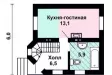 Внутренняя планировка составлена таким образом, что бы использовать с пользой максимальное пространство. Так, в доме всего три комнаты. Одна из них, пожалуй, главная – это гостиная комната, полностью совмещенная с кухней, занимает площадь в 13,1 кв. м. Она размещена на первом этаже, рядом с ванной комнатой размером 5,9 кв. м. Две другие комнаты расположены на втором этаже и запроектированы под спальни - 6 кв. м. и 14,3 кв. м. На балкон можно попасть из небольшого холла второго этажа, размер которого 6,8 кв. м.
