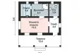 Внутренняя планировка предлагает только одну комнату, предназначенную для отдыха, площадью 13,3 кв. м., из которой можно попасть в ванную комнату и далее в небольшую сауну размером 3,8 кв. м. Вход в отдельный санузел площадью 3,9 кв. м. расположен в холле дома.