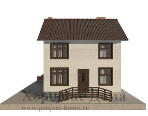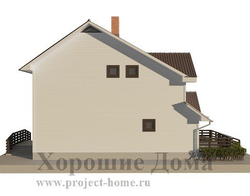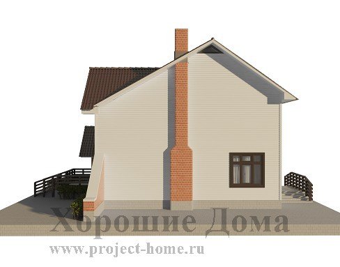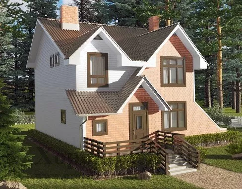 Эффектный, стильный загородный особняк предназначается для проживания немногочисленной семьи составом до пяти человек, как сезонно, так и постоянно, при условии обязательного обустройства отопительного котла в комнате для нужд кладовой слева от главного входа. Проект позволяет возводить дом на не очень больших участках, имеющих ровный рельеф, он очень экономичен, затраты на строительство сведены до разумного минимума.