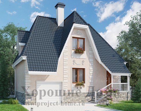Стильный дом из газобетона до 100 м2 с мансардой с фигурной крышей