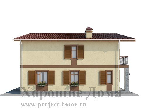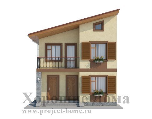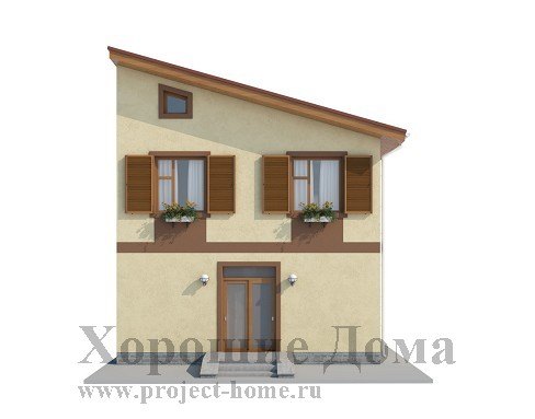 Современный загородный дом, с прямыми линиями и лаконичной отделкой фасада, очень бюджетный в плане затрат на строительство. Особую выразительность дому придают деревянные ставни.