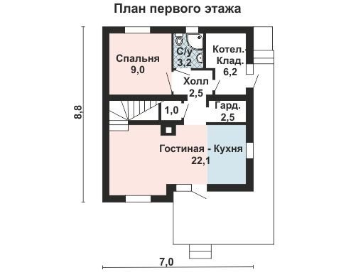 Проект дома: газобетон, 8x8 м, с двускатной острой крышей