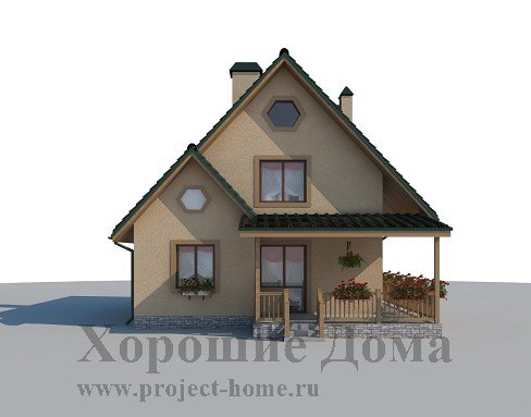 Отделка фасада – декоративная штукатурка с элементами декора.