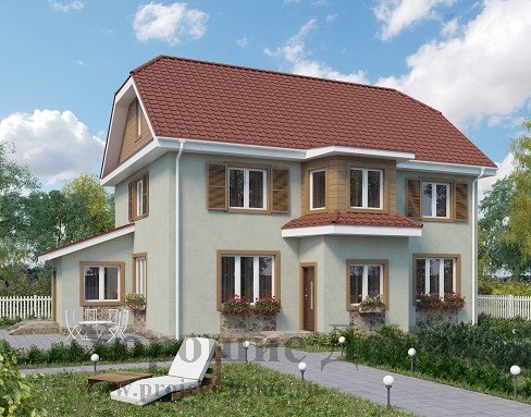 Проект довольно крупного двухэтажного особняка для полноценного проживания в городе или за ним. Этот дом отлично подойдет довольно большой семье, так как имеет три спальные комнаты и дополнительное помещение, которое так же возможно использовать в качестве небольшой спальни.