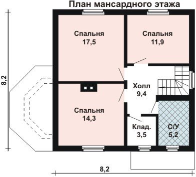 Дом из газобетона 8 на 8 м: проект в деревенском стиле