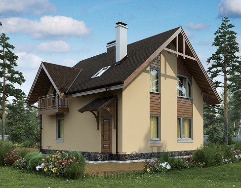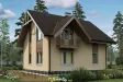 Удивительно колоритный загородный коттедж отличается эффектным архитектурным решением многоскатной крыши с вертикальными мансардными окнами и уютными балконами, простой и лаконичной отделкой фасада, чётко обозначенным главным входом, оформленным изящным козырьком и мощными пилонами.