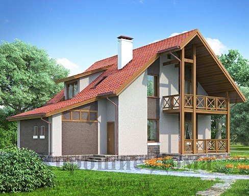Проект дома из газобетона в скандинавском стиле с мансардой