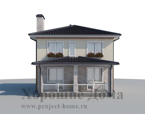 Этот экономичный и компактный коттедж в классическом исполнении, с явно выраженным цельным объёмом, чётко обозначенным входом, строгим и лаконичным фасадом – идеальный выбор загородного жилища для небольшой семьи в составе 2-5 человек. Дом рассчитан на использование в теплое время года, но может использоваться и круглогодично с условием, что помещение кладовой будет переоборудовано в котельную.