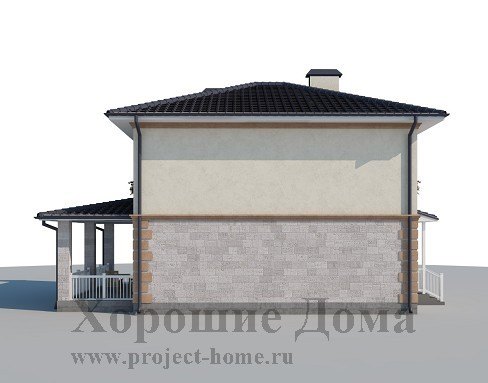 Отделка фасада – декоративная штукатурка, плитка под натуральный камень, элементы декора.