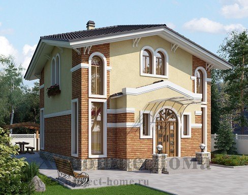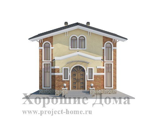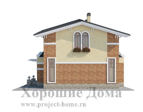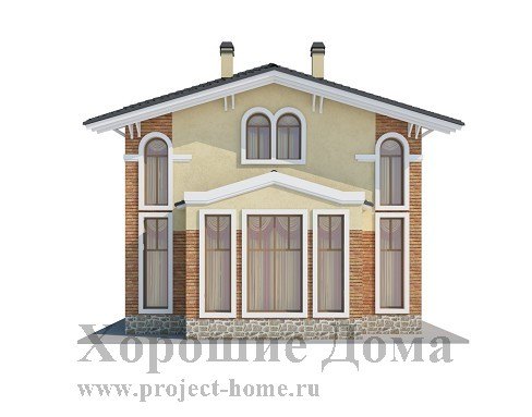 Двуxэтажный дом из газобетона 8 на 10 м в тосканском стиле
