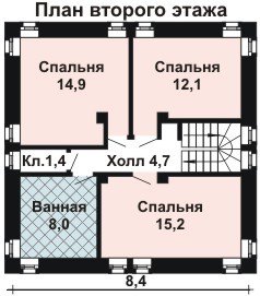 Также на первом этаже находятся холл, кабинет, бытовые помещения и кладовая, которая при круглогодичном использовании дома, может быть переоборудована в котельную. В зонах отдыха на втором этаже расположены три просторные спальни, ванная комната и небольшая кладовая.