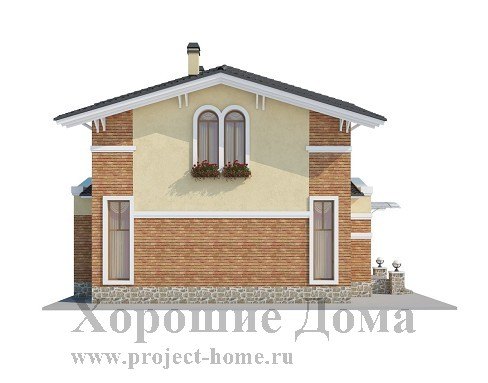 Отделка фасада – облицовочный кирпич, декоративная штукатурка с элементами архитектурного декора, отделка цоколя – натуральный камень.
