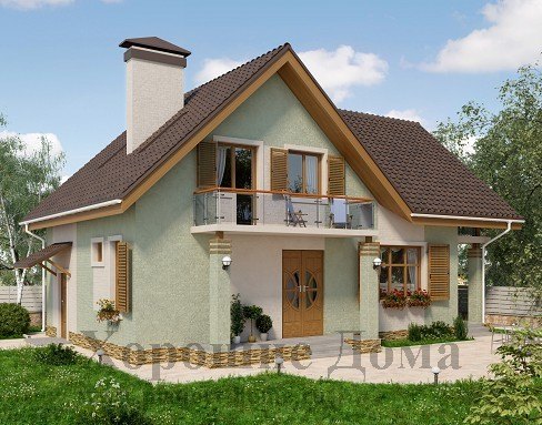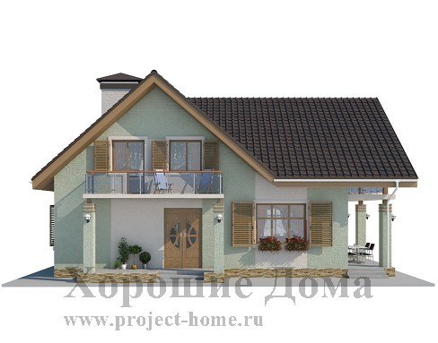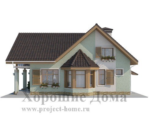 Проект дома в стиле кантри с эркером, террасой и балконом