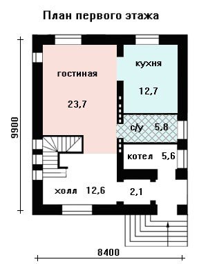Дом имеет очень удобную продуманную планировку. На первом этаже разместился просторный двухсветный холл, плавно перетекающий в помещение гостиной. Гостиная соединена арочным проёмом с кухней. Вход в помещение котельной выполнен со стороны улицы.