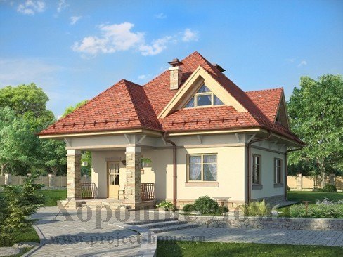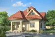 Добротный, уютный коттедж с эффектной многоскатной крышей и вертикальными мансардными окнами, мощными пилонами на входе в дом, которые поддерживают нависающий объём эркера, предназначен для проживания небольшой семьи из 2-4 человек. Дом очень экономичный, бюджетный, его размеры позволяют производить застройку на участках малой площади.