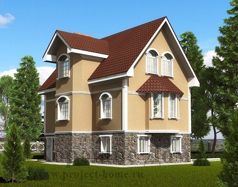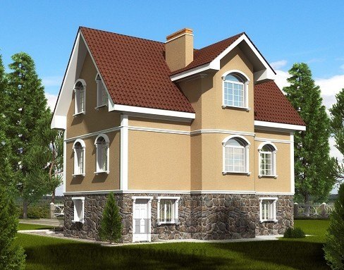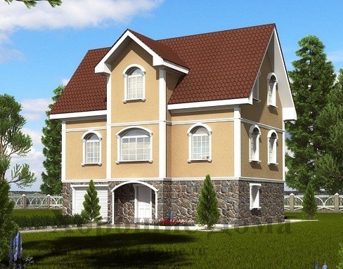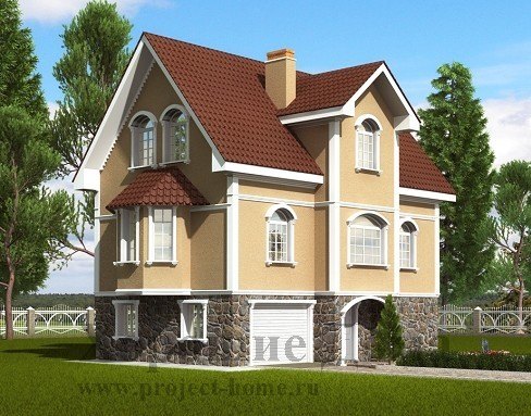 Строгий, сдержанный проект загородного дома выполнен в традициях английского классицизма. Элегантность и завершенность дому придают три эркера разной формы и оформления, арочные окна с элементами архитектурного декора, крутая двухскатная крыша. В доме имеются три этажа, один из которых мансардный.