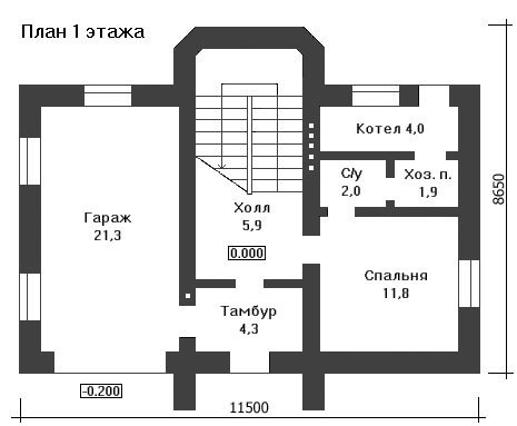 На первом этаже расположен гараж, хозяйственный блок и гостевая спальня.