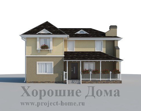 Отделка фасада – декоративная штукатурка, элементы декора; цоколь – натуральный камень.