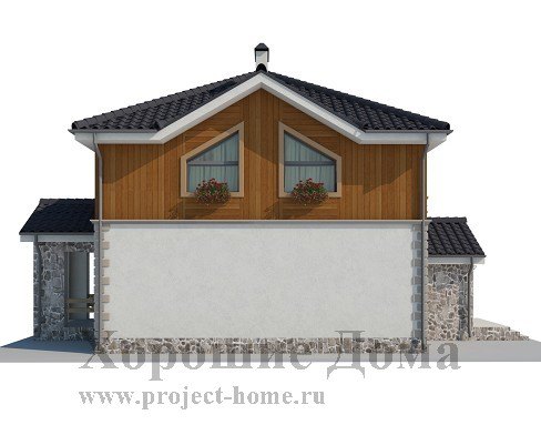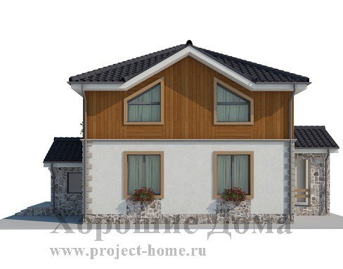 Отделка фасада – декоративная штукатурка с элементами декора, облицовочный натуральный камень, деревянные панели.