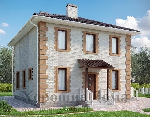 Двухэтажный загородный коттедж в классическом исполнении, добротный и надёжный, привлекает лаконичным дизайном и изысканной простотой. Проект очень компактный и бюджетный, рассчитан на небольшую семью среднего достатка, предпочитающую загородный стиль жизни.