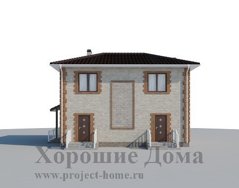 Отделка фасада - облицовочный кирпич двух цветов, элементы декора в виде рустов и откосов.