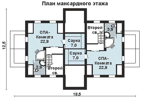 Лестница, ведущая на второй этаж, расположена в холле, по ней можно подняться в зону отдыха на втором этаже, которая объединяет три спальни и ванную комнату. Мансардное помещение отводится под зону отдыха и релакса, а также СПА-процедур.