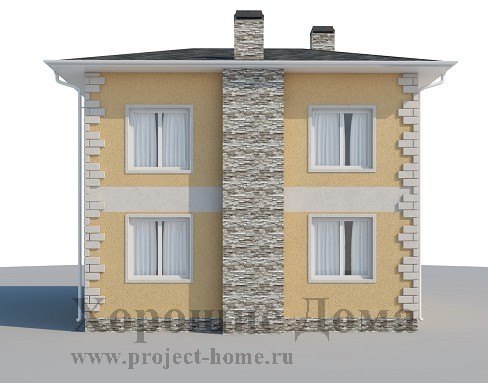 Отделка фасада – декоративная штукатурка, отделка цоколя – натуральный камень.