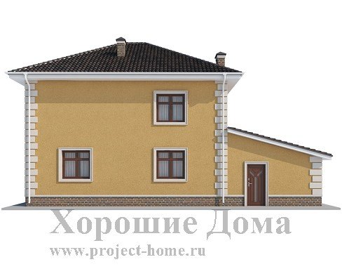 Отличный проект двухэтажного городского коттеджа с гаражом общей площадью 180,3 кв. м. Дом выглядит просто и имеет логичную продуманную планировку каждого этажа. Просторный гараж на один автомобиль занимает площадь в 27 кв. м. и имеет отдельный выход во внутреннюю часть дома, а так же собственный вход в помещение котельной. Так же в котельную можно попасть и с улицы, обойдя дом.