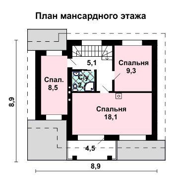 Площадь дома невелика, но его внутренняя планировка очень эффективно и логично решена для достижения максимального комфорта обитателей коттеджа и их гостей. На первом этаже находятся уютное помещение кухни-гостиной, гостевая спальня и санузел. Мансардный этаж представляет собой зону отдыха, где расположены три спальни и ванная комната. Самая большая спальня имеет выход на элегантный балкон.