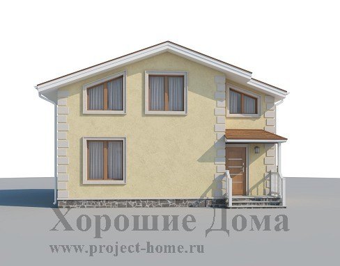 Отделка фасада – декоративная штукатурка с элементами архитектурного декора; отделка цоколя – природный камень.