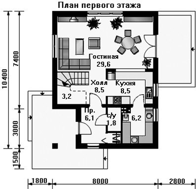 Высота первого этажа - 2.8 м ,