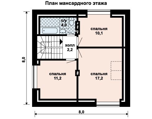 На мансардном этаже площадь коридоров сведена до логического минимума, вокруг небольшого холла там разместились три спальни и ванная комната.