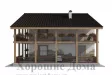 Колоритный загородный коттедж в стиле кантри привлекает внимание своей двухскатной асимметричной крышей, далеко выступающей за фасад и служащей защитой для просторной двухъярусной террасы из деревянных конструкций, изысканной отделкой фасада с фрагментами из натурального камня и выразительными окнами. Дом рассчитан для комфортного проживания в теплое время года небольшой семьи в составе 2-5 человек.