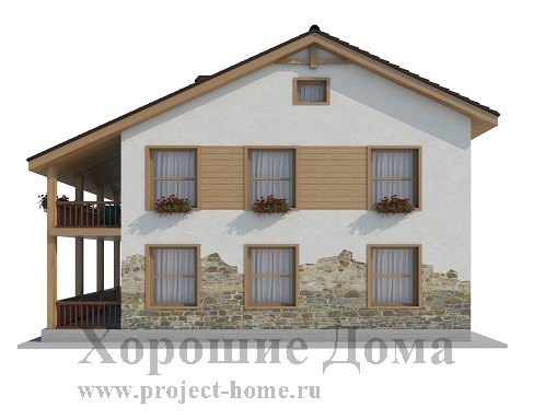 Отделка фасада – декоративная штукатурка, натуральный камень, деревянные панели.