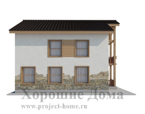Проект дома из газобетона 9 на 9 м с балконом на всю длину стены