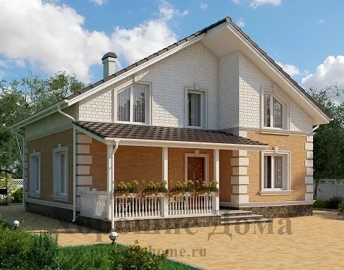 Двуxэтажный дом из газобетона с окнами оригинальной формы