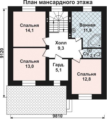 Мансардный этаж - это зона спален, их три, все небольшие и уютные. Также на этаже имеется большая ванная комната с джакузи, гардеробная комната и санузел.