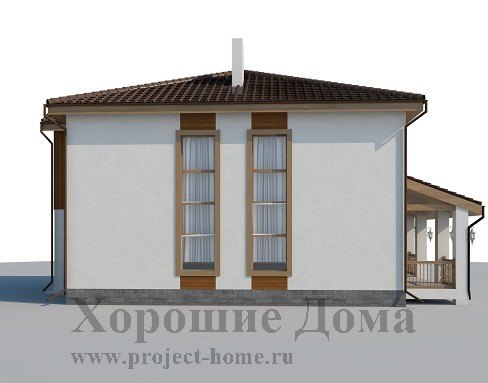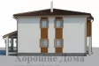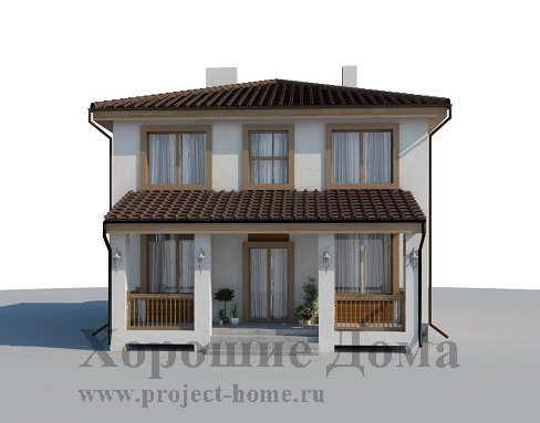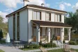 Респектабельный загородный особняк выделяется своими прямолинейными формами, стильным оформлением фасада, оригинальными окнами, солидно оформленным главным входом, который украшен мощными пилонами. Проект очень экономичен, предназначен для проживания довольно большой семьи в составе 4-6 человек в теплое время года.