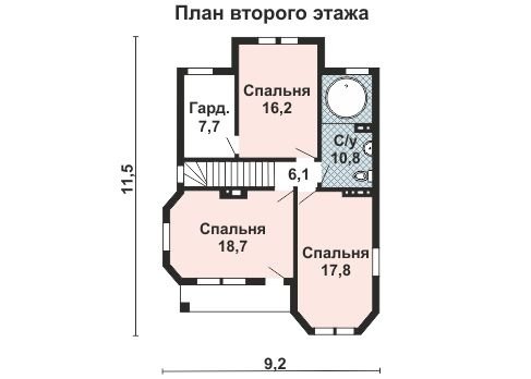 В доме так же имеется небольшая терраса площадью 6,9 кв. м., выход на которую оборудован из гостиной комнаты. На втором этаже удобно размещены три большие спальни 16,2 кв. м., 17,8 кв. м. и 18,7 кв. м. Наименьшая из спален имеет собственную гардеробную комнату.