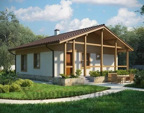 Небольшой с очень компактной планировкой коттедж для загородного отдыха площадью 69,5 кв. м. Имеющий практически равные стороны, а соответственно форму квадрата, этот коттедж радует своей гармоничной и практичной планировкой. Важно, что благодаря удачной планировке в данном коттедже возможно и постоянное проживание совсем небольшой семьи.